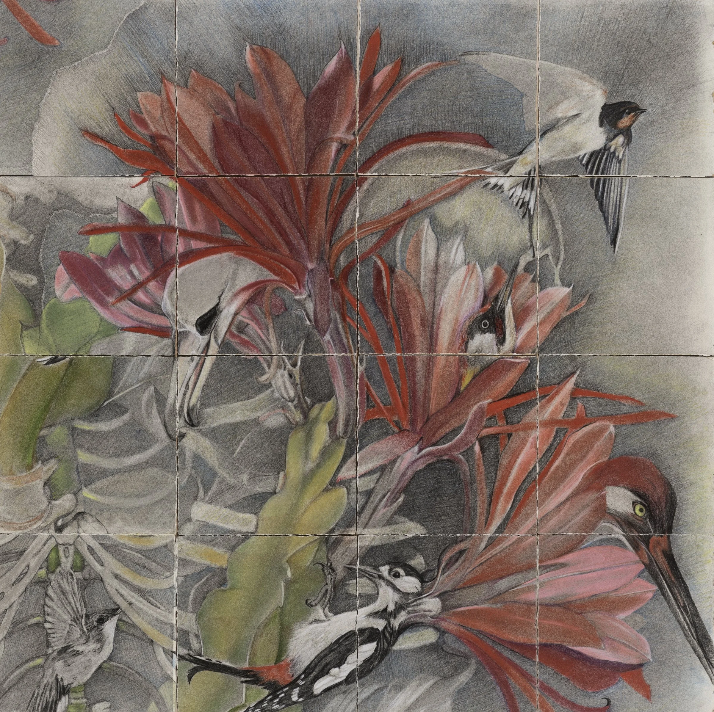 Blooming From Within, Mixed Media Drawing on Wood Panels 48"x96"x1"